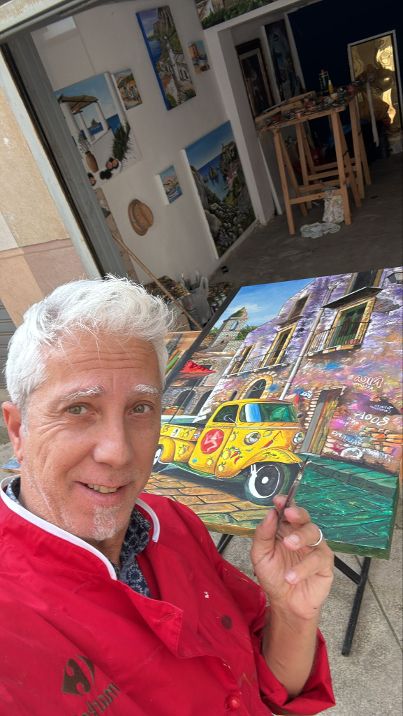 Dipingo da 59 anni. Ho iniziato a 10 anni. Mi piace l’iperrealismo. Con i colori mi avvicino il più possibile alla realtà. Amo mettere su tela i luoghi e i paesaggi siciliani. Le mie opere si trovano in tutto il mondo, in America, in Inghilterra e persino in Australia, ovviamente anche in Sicilia. Insieme a Paola Salute ho realizzato “trompe l’oeil” per gli alberghi americani, ville e, ristoranti. La pittura è nel mio cuore. Ci tengo a precisare che sono un autodidatta, anche nella pittura.