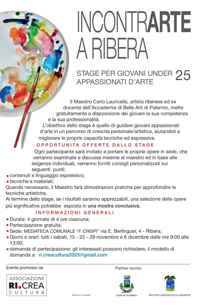 Ribera: L’associazione RI.CREA organizza uno stage d’arte con il maestro Carlo Lauricella Di Redazione - 27 ottobre 2025 80 Condividi su Facebook Twitta su Twitter