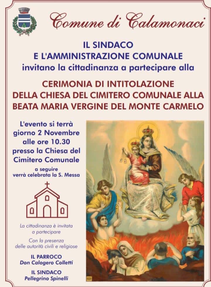 Calamonaci: La cappella del cimitero intitolata a Maria Vergine del Monte Carmelo Di Redazione - 30 ottobre 2025 28 Condividi su Facebook Twitta su Twitter