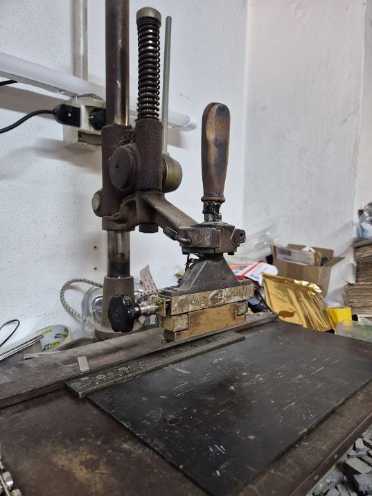 Alcuni si. Sono in buona parte i macchinari che mio nonno ha comprato ai suoi tempi, ad inizio di un’asta dell’ottico Randazzo, che all’inizio del secolo faceva gli album fotografici pure lui, poi ha dato l’appalto a mio nonno e gli ha venduto questi macchinari. Tra i macchinari c’è un incisore che si accende a fuoco e incide le copertine in oro, in argento ecc…Ne abbiamo un altro uguale più piccolo e le presse.