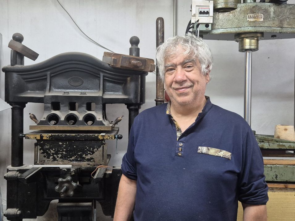 Alcuni si. Sono in buona parte i macchinari che mio nonno ha comprato ai suoi tempi, ad inizio di un’asta dell’ottico Randazzo, che all’inizio del secolo faceva gli album fotografici pure lui, poi ha dato l’appalto a mio nonno e gli ha venduto questi macchinari. Tra i macchinari c’è un incisore che si accende a fuoco e incide le copertine in oro, in argento ecc…Ne abbiamo un altro uguale più piccolo e le presse.